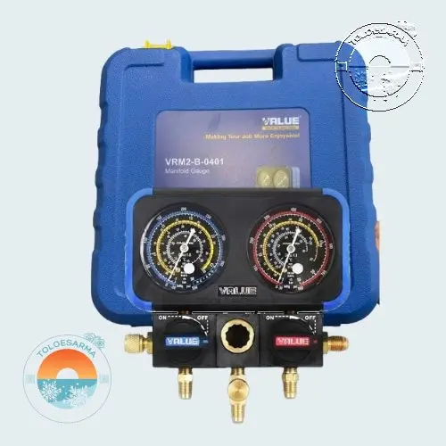 گیج منیفولد دوقلو ولیو مدل VRM2-B-0401 از سری ابزارهای پرمصرف و باکیفیت برند معتبر VALUE است که برای اندازهگیری فشار بالا و پایین در سیستمهای برودتی و تهویه مطبوع طراحی شده است. این مدل دوقلو با دو صفحه نمایش فشار مجزا، امکان بررسی همزمان فشار مکش و فشار دهش را برای شما فراهم می کند و با داشتن شیر های باز و بست نیم دور کار کردن با آن را برای نصابان بسیار راحتر میکند.